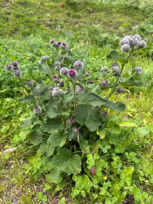 Synonyme: Filzige Klette, Woll-Klette, engl. Woolly Burdock.
